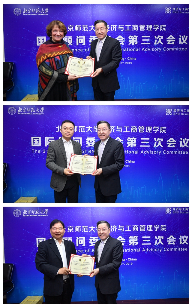 2019 年4 月3 日上午,經(jīng)濟(jì)與工商管理學(xué)院國(guó)際顧問(wèn)委員會(huì)第三次會(huì)議在后主樓A314會(huì)議室順利召開(kāi)。北京師范大學(xué)校長(zhǎng)、經(jīng)管學(xué)院顧問(wèn)委員會(huì)主席董奇在會(huì)前會(huì)見(jiàn)了與會(huì)委員,副校長(zhǎng)周作宇出席會(huì)議并致辭。參加本次會(huì)議的委員有:美洲開(kāi)發(fā)銀行副行長(zhǎng)Claudia Bock-Valotta,中國(guó)經(jīng)濟(jì)體制改革研究會(huì)學(xué)術(shù)委員會(huì)主任宋曉梧,香港瀚德集團(tuán)有限公司董事局主席鐘瀚德,中國(guó)人民大學(xué)商學(xué)院院長(zhǎng)毛基業(yè),瑞華會(huì)計(jì)師事務(wù)所黨委書(shū)記、瑞華集團(tuán)董事長(zhǎng)楊劍濤,天健會(huì)計(jì)師事務(wù)所黨委書(shū)記、首席合伙人、第十三屆全國(guó)人大代表胡少先,北京紅黃藍(lán)教育科技發(fā)展有限公司董事長(zhǎng)史燕來(lái),京東集團(tuán)副總裁蔡磊,中國(guó)與全球化智庫(kù)(CCG)理事長(zhǎng)王輝耀的特派代表、CCG副秘書(shū)長(zhǎng)秦剛等。經(jīng)濟(jì)與工商管理學(xué)院黨政負(fù)責(zé)人、教師和學(xué)生代表共計(jì)30余人參加了會(huì)議。