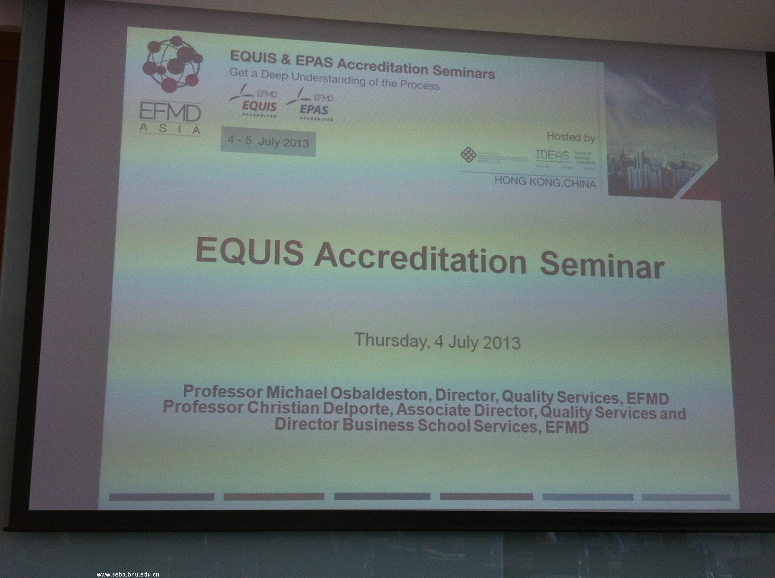2013年7月4日,EFMD(歐洲管理發(fā)展基金會)在香港理工大學(xué)舉行EQUIS認(rèn)證研討會,我院分管國際交流事務(wù)及MBA項(xiàng)目的副院長楊澄宇教授,院長助理兼國際化認(rèn)證辦公室主任狄承鋒副教授,以及負(fù)責(zé)國際交流的謝佳老師和李婧雅老師,參加了本次研討會。