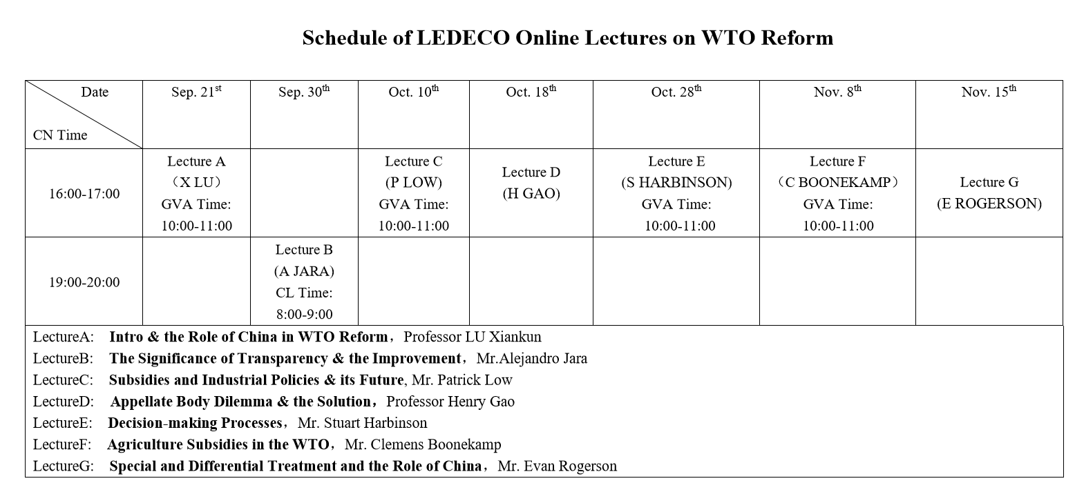 In order to cultivate high-level international organization talents with international vision and innovative ideas, and to play an active role in global governance and cultural exchanges, BNUBS and LEDECO Center of Switzerland will hold an online series of lectures on WTO Reforms, aiming to provide students with opportunities to communicate with senior WTO officials and relevant experts, to listen to their views on WTO reforms. This series of lectures will help students to master the world economic trends and common sense of international organization negotiations, and to apply and develop them in the future study or work.