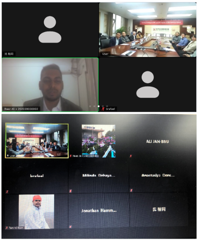 蔡宏波教授代表學(xué)院向2020級14名WEC(World Economy and China)項目碩士新生以及6名DID(International Development)項目博士新生表示祝賀和歡迎,而后他簡要介紹了北師大和經(jīng)管學(xué)院的基本情況、WEC項目的發(fā)展歷程和DID項目的設(shè)置背景,重點介紹了北師大經(jīng)管學(xué)院國際化人才培養(yǎng)的特色模式,并對新冠疫情下因暫時無法到校開展在線學(xué)習(xí)的留學(xué)生提出了相關(guān)建議,希望他們能克服困難、抓住機會,更加努力促進自身的全面成長。