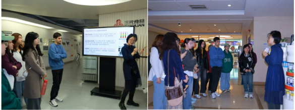 活動(dòng)伊始,師生們?cè)谘芯恐行墓ぷ魅藛T的引導(dǎo)下參觀了品牌墻,了解了三元奶的歷史沿革和品牌榮譽(yù)。工作人員著重介紹了三元奶的獨(dú)特優(yōu)勢(shì),從優(yōu)質(zhì)奶源的嚴(yán)格把控,到先進(jìn)生產(chǎn)工藝的運(yùn)用,再到產(chǎn)品豐富的營(yíng)養(yǎng)價(jià)值,每一個(gè)細(xì)節(jié)都彰顯著三元奶的品質(zhì)魅力。