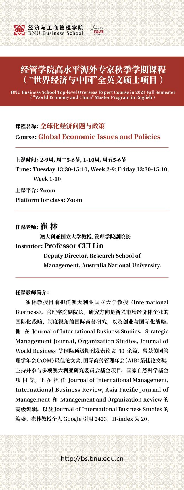 經(jīng)管學院高水平海外專家秋季學期課程(“世界經(jīng)濟與中國”全英文碩士項目)