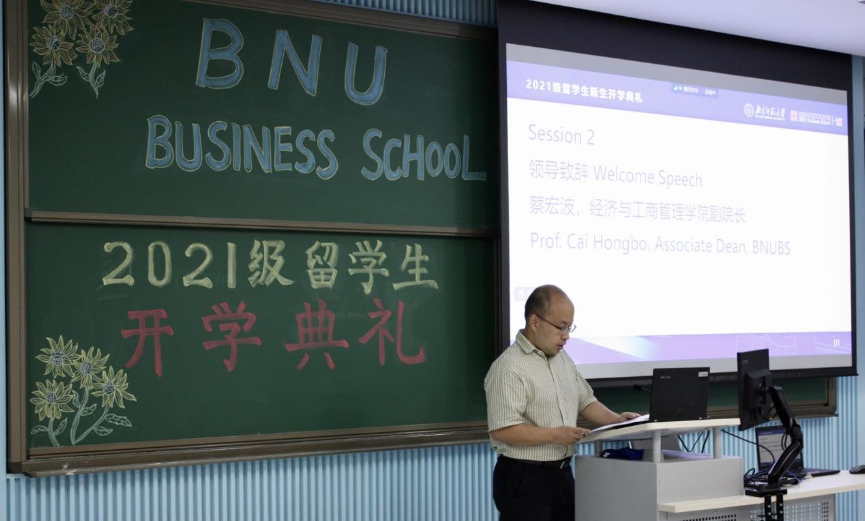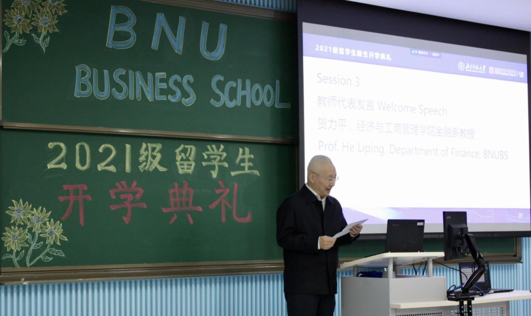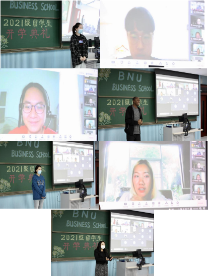 2021年9月24日下午,北京師范大學(xué)經(jīng)濟與工商管理學(xué)院2021級留學(xué)生開學(xué)典禮在北京校區(qū)舉行。出席開學(xué)典禮的有副院長蔡宏波,教師代表賀力平、王言、孔海洋、彭金玉(漢語文化學(xué)院),留學(xué)生班主任鄭飛虎、李慧、沈巖,2021級10位在校新生、5位在校老生,以及學(xué)院國際交流與合作辦公室全體成員。會議線上線下同步進行,共有22位來自全球10余個國家的留學(xué)生線上參加了典禮。典禮由學(xué)院國際交流與合作辦公室主任謝佳主持。
