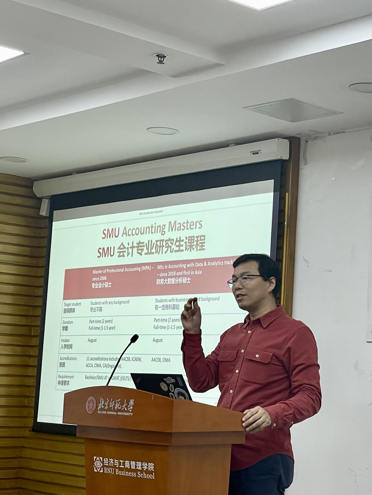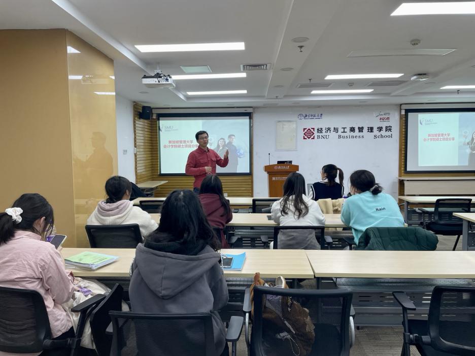 2023年11月22日下午,新加坡管理大學(xué)會計學(xué)院王紀(jì)偉教授受邀為我院學(xué)生進(jìn)行了會計學(xué)雙學(xué)位項目的宣講。