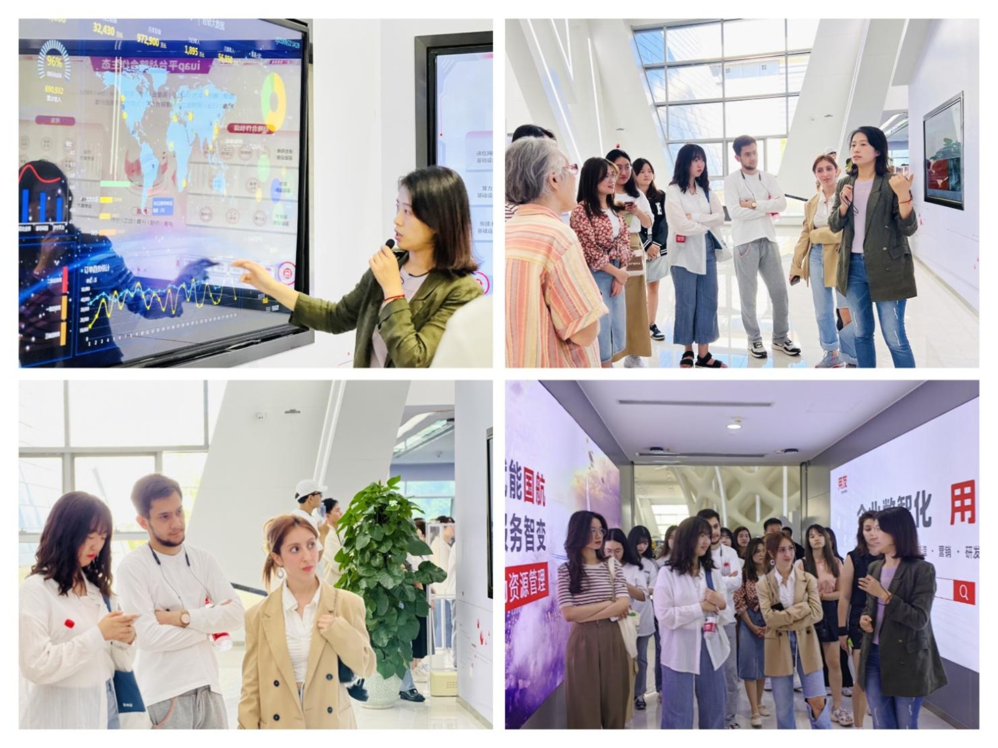 最后,張老師帶留學生團參觀了不同領域的數字轉型展廳。在不同展廳,留學生們都可以看到各行各業(yè)在數字化轉型之后的樣品和模型。展廳展現了不同行業(yè)的程序和產品,其中包括教育、政務、醫(yī)療、金融、廣信、資源等行業(yè)。同學們表示,參加此次企業(yè)參觀,不僅增長了對數字化的知識,同時也親身體會到了數字化所帶來的便利。