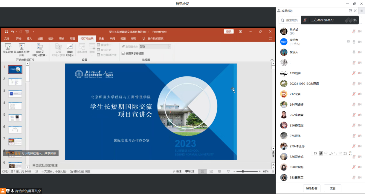 隨后,尚怡宏圍繞院級雙學(xué)位項目、交換生項目、短期交流項目、申請流程、學(xué)院資助、校內(nèi)審批等六個方面進行了介紹和講解。會議互動交流與答疑環(huán)節(jié),參會的同學(xué)踴躍提問,老師進行了詳細的解答。