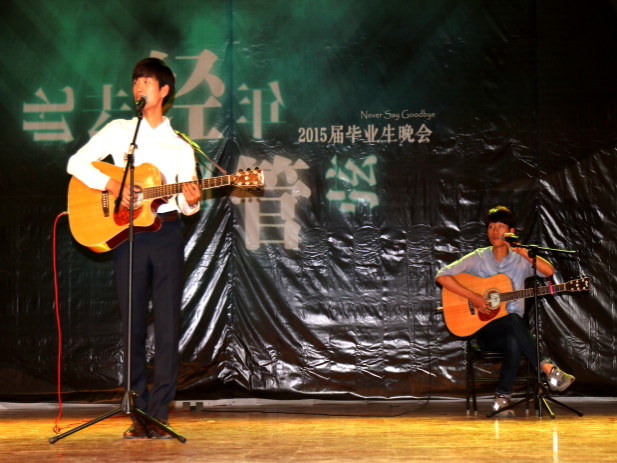 年年參加畢業(yè)生文藝晚會的金基喆,在今年的晚會上,再次激情表演吉他彈唱,班級很多同學為他喝彩。