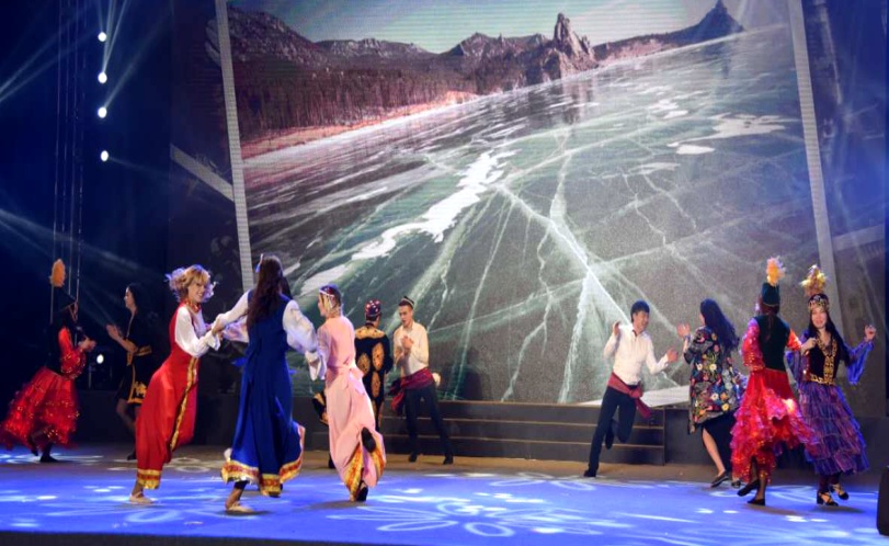 俄羅斯與哈薩克斯坦等國留學(xué)生表演民族舞,我院艾瑪、莫丁參加表演