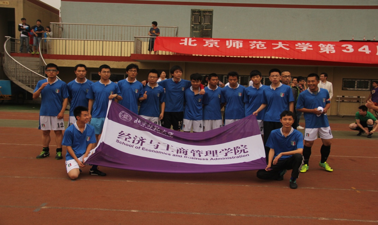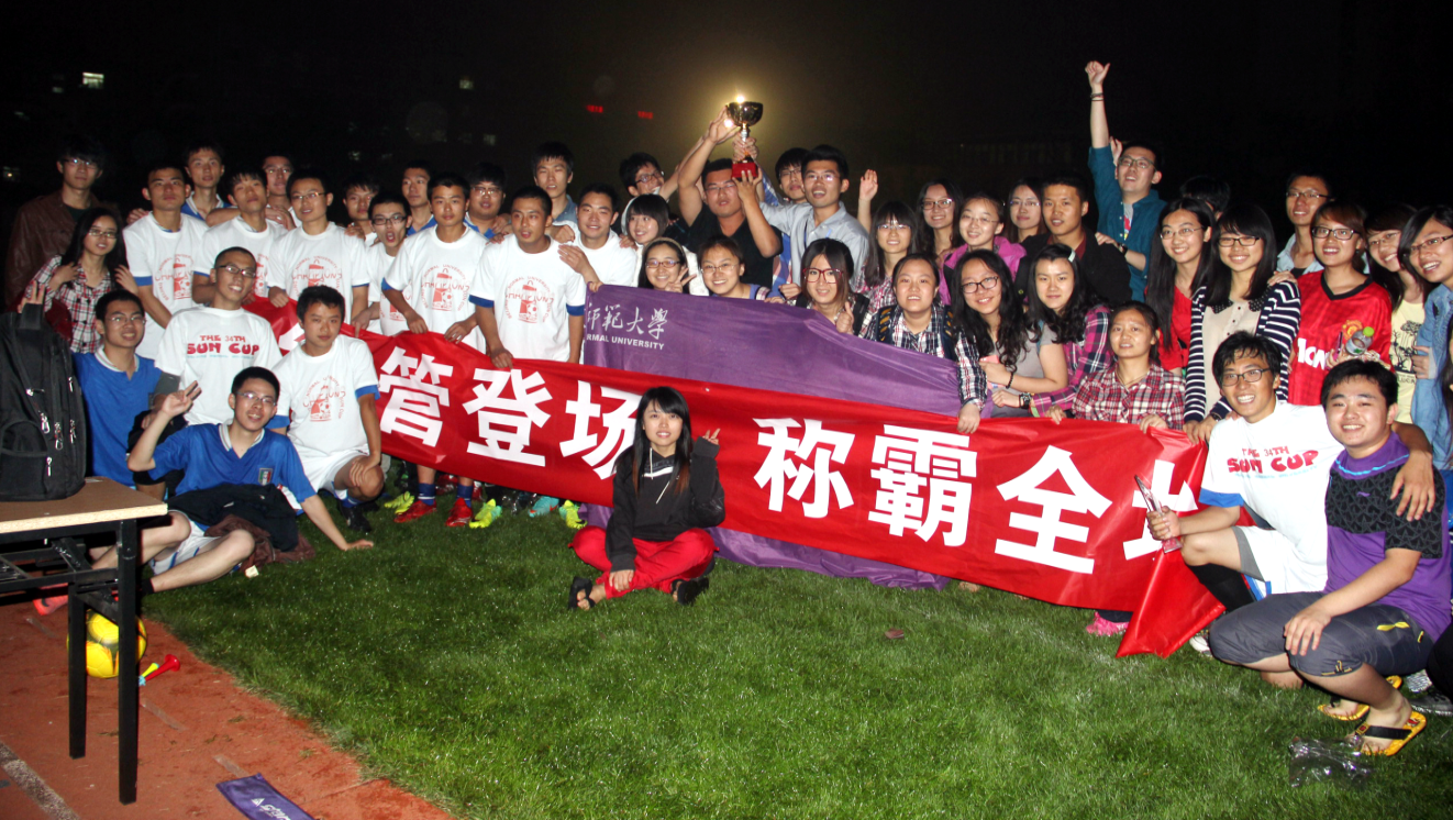 2013年6月6日下午5點(diǎn),北師大第34屆太陽杯足球賽經(jīng)濟(jì)管理學(xué)院和數(shù)學(xué)科學(xué)學(xué)院決賽于東操場拉開序幕。風(fēng)聲撼天翻陣勢,微雨飛空擊鼓擂。比賽異常激烈, 經(jīng)過三個(gè)小時(shí)精彩絕倫的比賽2:2 扳平后, 加時(shí)賽又以0:0告終,雙方挺進(jìn)點(diǎn)球大戰(zhàn)一決雌雄。最終,我院前鋒隊(duì)員留學(xué)生金基喆憑借著精準(zhǔn)的球技,以一球之差折戟數(shù)科隊(duì),經(jīng)管院一舉奪魁。