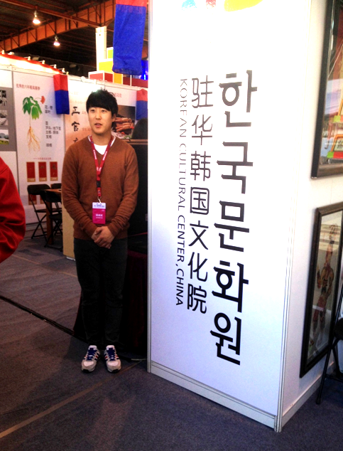3、2013年11月6日—10日 在北京國際展覽館,在第七屆“中國北京國際文化創(chuàng)意產(chǎn)業(yè)博覽會”的韓國展位,李知修作講解員。見下圖。