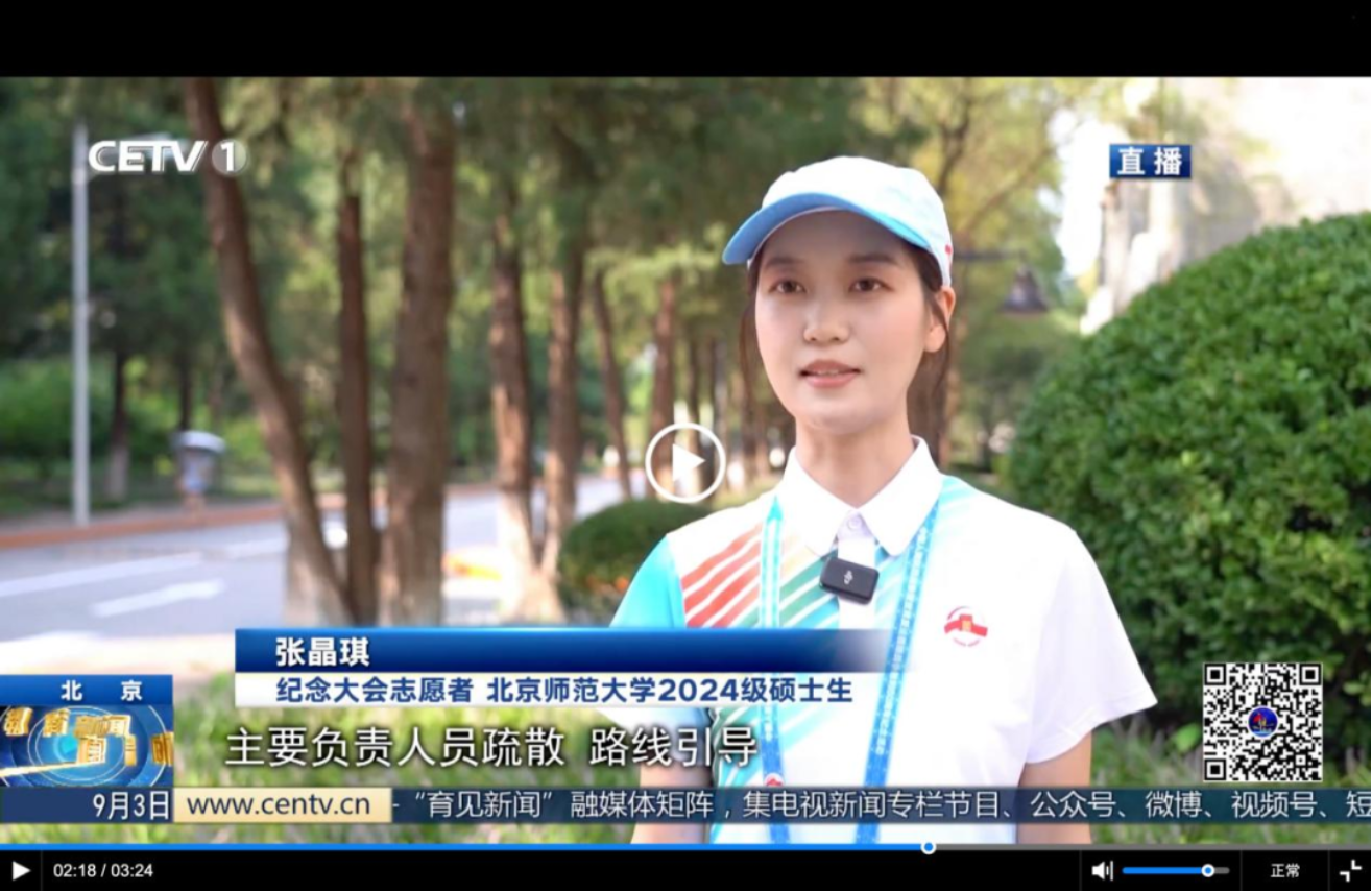 在志愿服務(wù)這條道路上,張晶琪始終步履堅定。紀(jì)念抗戰(zhàn)勝利80周年大會并非她首次參與國家盛事,早在新中國成立70周年慶典時,她便已投身其中,擔(dān)任志愿者兼宣傳員。談及一次次參與國家重大活動服務(wù)保障工作的初心,她坦言源于一份樸素而真摯的情感——“身在師大,與有榮焉”。“北師大是一所有著光榮傳統(tǒng)和紅色基因的學(xué)府,每逢國家大事,師大人從不缺席。能作為其中一員,親身參與并見證歷史,是一種無上的光榮。”她如是說。