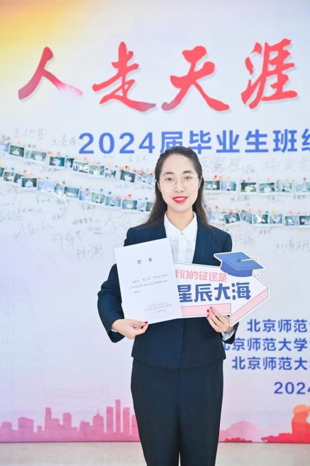 臨別之際,周美彤同學(xué)再次回望過去,感慨萬千。“選擇師大,始于了解到師大有莫言、余華、康震老師等名師大家,敬于一代代北師大人治學(xué)修身、兼濟(jì)天下,感于其深厚的文化底蘊(yùn)和學(xué)術(shù)氛圍,忠于其勵(lì)教興邦、筑夢教育強(qiáng)國的使命擔(dān)當(dāng)。四年來,我在勤勉求學(xué)、且行且思中感受學(xué)校和學(xué)院提供發(fā)展平臺的廣度,在溫暖關(guān)愛、真誠守護(hù)中感受師大人文關(guān)懷的溫度,在與黨同行、與校同慶中感受師大教育興邦和底蘊(yùn)沉淀的深度。畢業(yè)在即,千言萬語無法以有限的筆力呈現(xiàn),無論何時(shí)何地,我會永遠(yuǎn)永遠(yuǎn)為母校北京師范大學(xué)感到驕傲,為自己是一名師大人而自豪!我祝愿母校北京師范大學(xué)在推進(jìn)中國特色世界一流大學(xué)建設(shè)進(jìn)程中蓬勃發(fā)展,弦歌不輟,再創(chuàng)輝煌;祝愿各位老師身體健康,工作順利;祝愿各位同學(xué)前程似錦,一路生花!”