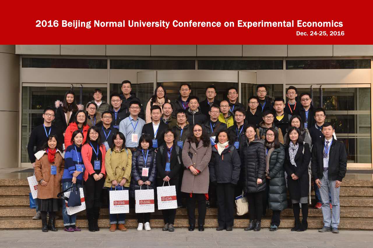 2016年12月24日至25日,由北京師范大學(xué)經(jīng)濟(jì)與工商管理學(xué)院主辦的2016年北京師范大學(xué)實驗經(jīng)濟(jì)學(xué)國際研討會在京師大廈成功舉行,會議邀請到了實驗經(jīng)濟(jì)學(xué)領(lǐng)域最頂尖的華人經(jīng)濟(jì)學(xué)家,來自密歇根大學(xué)的陳巖教授做主題發(fā)言,陳巖教授曾多次在American Economic Review、Journal of Political Economy、Journal of Economic Theory、Games and Economic Behavior、Journal of Public Economics、Management Science、Experimental Economics等國際頂級期刊發(fā)表文章,擔(dān)任Economic Science Association主席,Games and Economic Behavior、Management Science、Experimental Economics等期刊的主編、副主編或編委。來自波恩大學(xué)、莫納什大學(xué)、新加坡國立大學(xué)、清華大學(xué)、北京師范大學(xué)等的近50位實驗經(jīng)濟(jì)學(xué)領(lǐng)域的學(xué)者參加了本次會議。