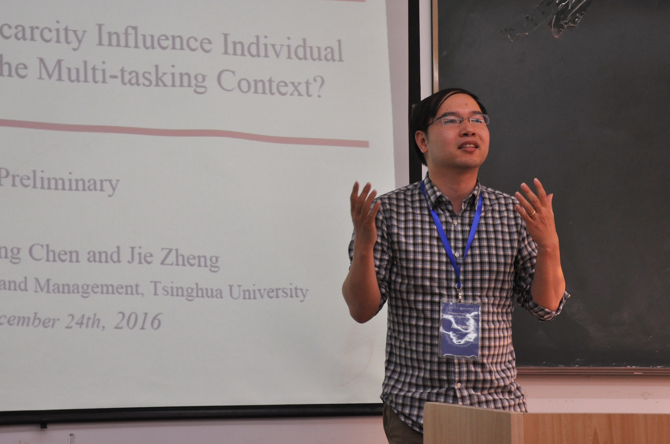 主題演講結(jié)束之后,會議分兩個平行會場同時進(jìn)行,來自北京師范大學(xué)、清華大學(xué)、中國人民大學(xué)、上海財經(jīng)大學(xué)、新加坡國立大學(xué)、南洋理工大學(xué)等國內(nèi)外高校的25位學(xué)者進(jìn)行了各自的論文展示。會議文章涉及的內(nèi)容包括高等院校招生的公平“配額”問題研究、對獨生子女的歧視研究、時間約束對多任務(wù)背景下的工作表現(xiàn)影響研究、不同語言文化背景下的欺騙行為研究等。會議專門設(shè)置了論文評議環(huán)節(jié),與會人員就展示的論文進(jìn)行了深入的交流、現(xiàn)場討論氛圍活躍。