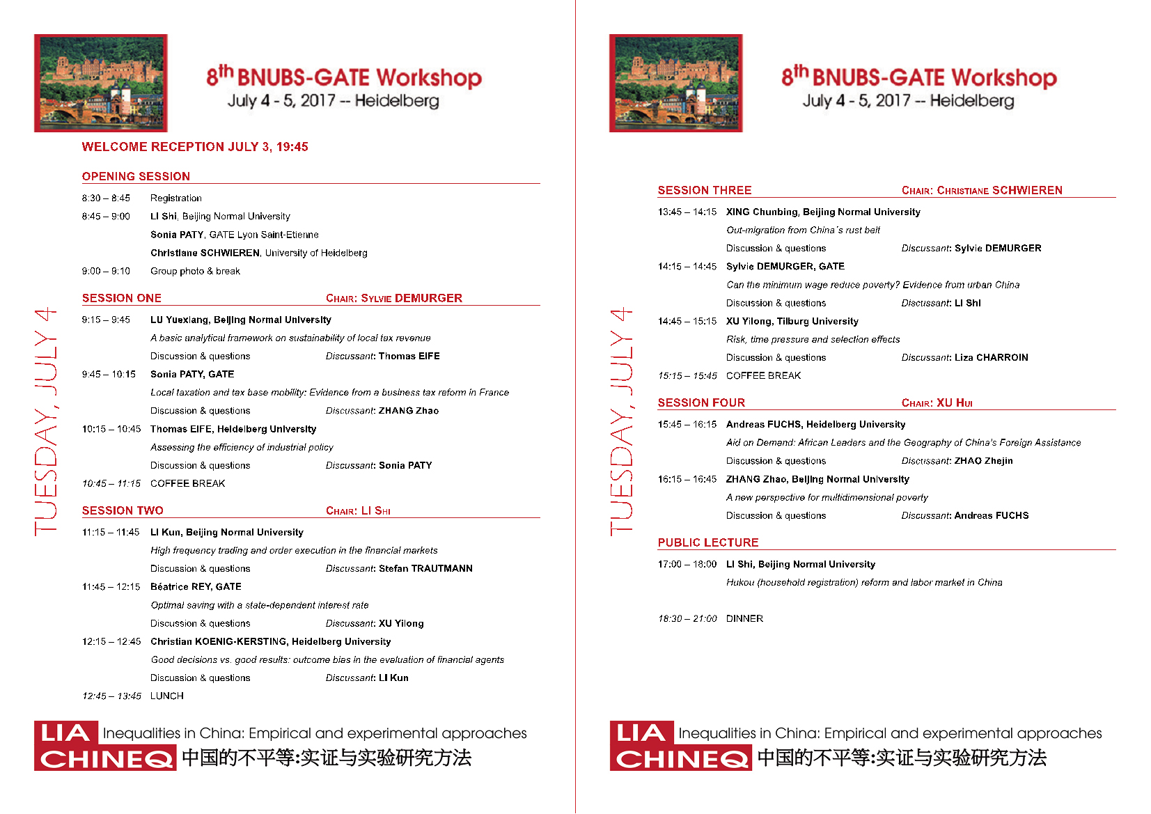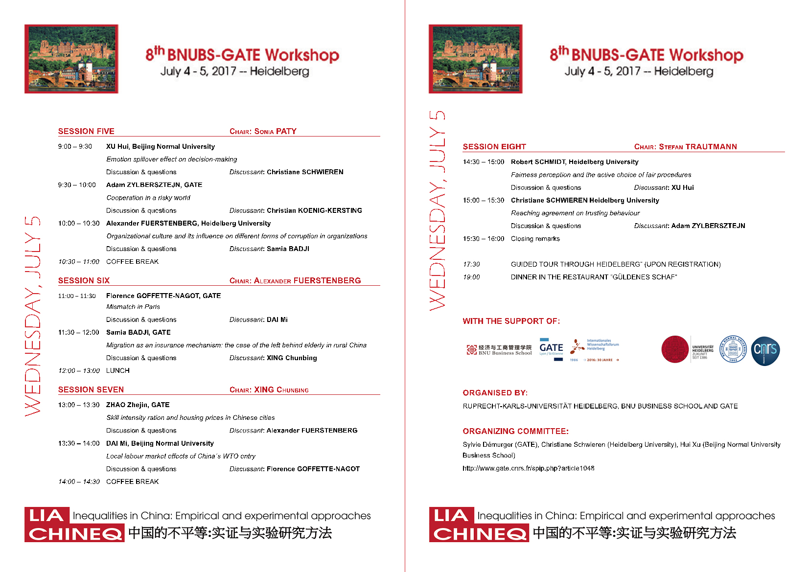 由北京師范大學(xué)經(jīng)濟(jì)與工商管理學(xué)院(BNUBS)、法國(guó)GATE經(jīng)濟(jì)學(xué)實(shí)驗(yàn)室和德國(guó)海德堡大學(xué)聯(lián)合主辦,德國(guó)海德堡大學(xué)承辦的第八屆BNUBS-GATE研討會(huì)于2017年7月4日-5日在海德堡大學(xué)成功舉行。