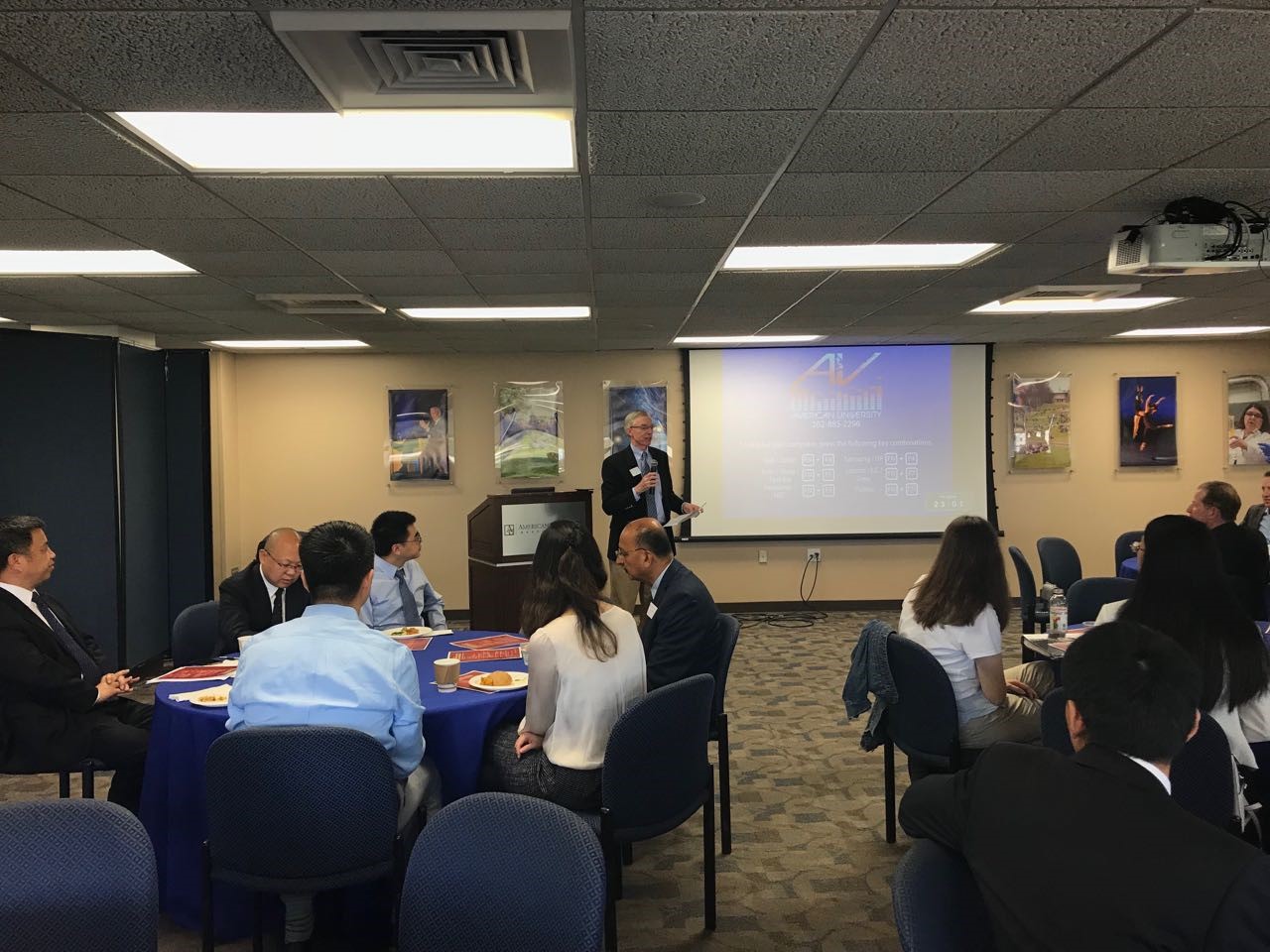 下午的主題論壇在美利堅大學(xué)Kogod商學(xué)院Main Mall舉行。美利堅大學(xué)Kogod商學(xué)院Erran Carmel教授、Sally Kram教授,以及北京師范大學(xué)經(jīng)濟與工商管理學(xué)院曲如曉教授、崔學(xué)剛教授、鄭飛虎副教授、許敏波博士和李堃博士等圍繞首都經(jīng)濟功能、大華府地區(qū)大學(xué)發(fā)展、北京文化產(chǎn)業(yè)、雄安新區(qū)戰(zhàn)略、跨國公司研發(fā)集聚、中國經(jīng)濟區(qū)的高新產(chǎn)業(yè)集聚、雄安新區(qū)與金融市場等問題展開了研討和深入交流。美利堅大學(xué)國際關(guān)系學(xué)院Quansheng Zhao教授應(yīng)邀就當前中美關(guān)系發(fā)表主旨演講,他提出中國與美國在亞太地區(qū)的雙核領(lǐng)導(dǎo)結(jié)構(gòu)的重要性和必然性,以及如何看待未來亞太地區(qū)的發(fā)展格局。