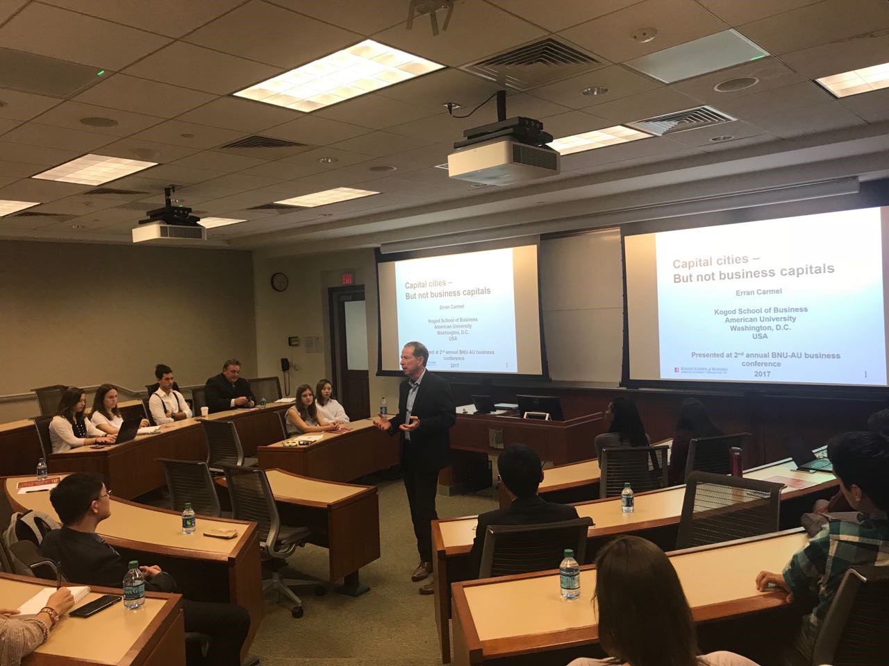 最后,北京師范大學(xué)經(jīng)濟與工商管理學(xué)院賴德勝院長在閉幕致辭中指出,本次論壇十分成功,大家圍繞首都華盛頓及北京的熱門話題進行了精彩發(fā)言和深入研討,論壇成果一定能很好的服務(wù)于學(xué)術(shù)研究及社會經(jīng)濟發(fā)展,同時再次感謝美利堅大學(xué)Kogod商學(xué)院為本次論壇做出的辛勤工作,雙方的合作一定會有更加美好的未來。隨后,美利堅大學(xué)Kogod商學(xué)院前院長Erran Carmel教授感謝雙方專家和現(xiàn)場師生為大家奉獻了這樣一場精彩的研討,他認為首都本身蘊藏著巨大的商機和學(xué)術(shù)研究價值,希望有更多的人將更多目光投向首都發(fā)展。