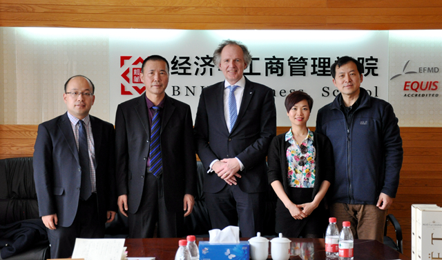 戚聿東院長(zhǎng)對(duì)Harald Von Korflesch副校長(zhǎng)一行表示歡迎,他介紹了雙方共同開展的創(chuàng)新創(chuàng)業(yè)與技術(shù)管理碩士(ETI-M)項(xiàng)目進(jìn)展以及我院在人才培養(yǎng)、學(xué)生創(chuàng)新創(chuàng)業(yè)活動(dòng)的情況。Korflesch副校長(zhǎng)表示很高興再次到訪我院,隨后他表示德方會(huì)繼續(xù)支持ETI-M項(xiàng)目,并介紹了德國(guó)創(chuàng)新創(chuàng)業(yè)活動(dòng)和科布倫茨-蘭道大學(xué)設(shè)計(jì)思維學(xué)院(Design Thinking School)項(xiàng)目,希望與我院在更多領(lǐng)域開展合作。雙方重點(diǎn)探討了ETI-M項(xiàng)目和短期學(xué)生交流項(xiàng)目,并希望借此機(jī)會(huì)積極推動(dòng)雙方的合作與交流,使兩校更多的教師和學(xué)生從中受益。