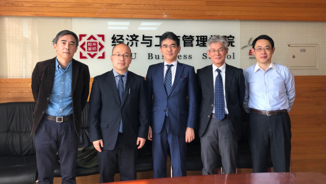 10月20-23日,日本櫻美林大學(xué)研究生院院長境睦、櫻美林大學(xué)綜合研究機(jī)構(gòu)企業(yè)管理科學(xué)研究所所長齋藤隆夫、櫻美林大學(xué)文理學(xué)院兼研究生經(jīng)營學(xué)研究科教授、我校校友任云到訪我院,對我院進(jìn)行了為期兩天的訪問。