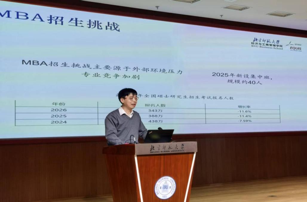 院長助理周江華匯報了MBA教育工作。過去一年,MBA教育面對激烈的市場競爭,主動求變,通過全媒體矩陣宣傳實現(xiàn)品牌破圈;在培養(yǎng)環(huán)節(jié),通過升級課程體系、強化數(shù)字素養(yǎng)與實踐教學,以及深化校企協(xié)同育人,進一步提升了MBA教育的品牌含金量與人才培養(yǎng)質(zhì)量。