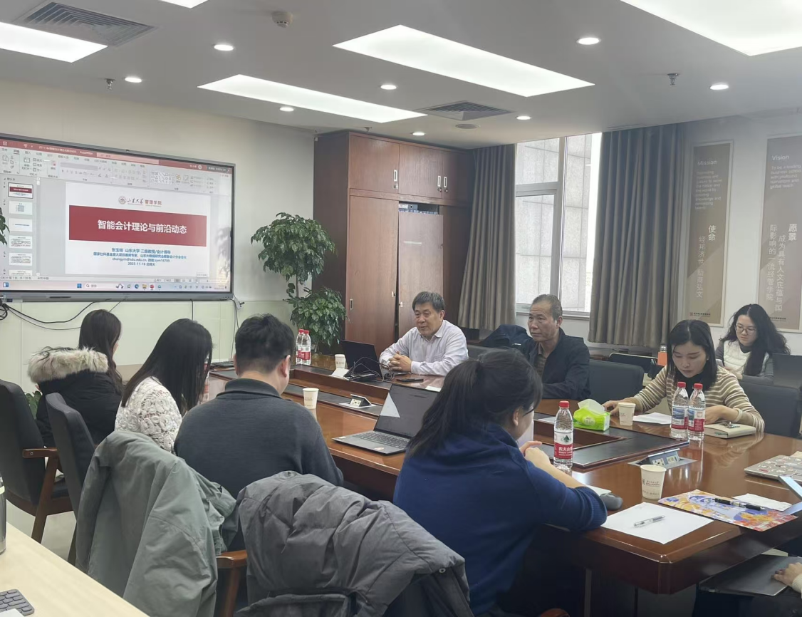 11月18日下午15:00,第158期名家講壇聯(lián)合會(huì)計(jì)與財(cái)務(wù)研究論壇 “數(shù)智前沿”(第33期)準(zhǔn)時(shí)舉辦,主題為 “智能會(huì)計(jì)理論與前沿動(dòng)態(tài)”。主持人張會(huì)麗教授介紹,主講人張玉明教授是山東大學(xué)管理學(xué)院二級(jí)教授、博士生導(dǎo)師,兼任該校中小企業(yè)研究所所長、智能會(huì)計(jì)研究中心主任,擁有復(fù)旦大學(xué)經(jīng)濟(jì)學(xué)博士及博士后經(jīng)歷,長期深耕智能會(huì)計(jì)與公司金融領(lǐng)域,主持國家級(jí)課題并擔(dān)任權(quán)威期刊審稿專家,學(xué)術(shù)與行業(yè)影響力顯著。