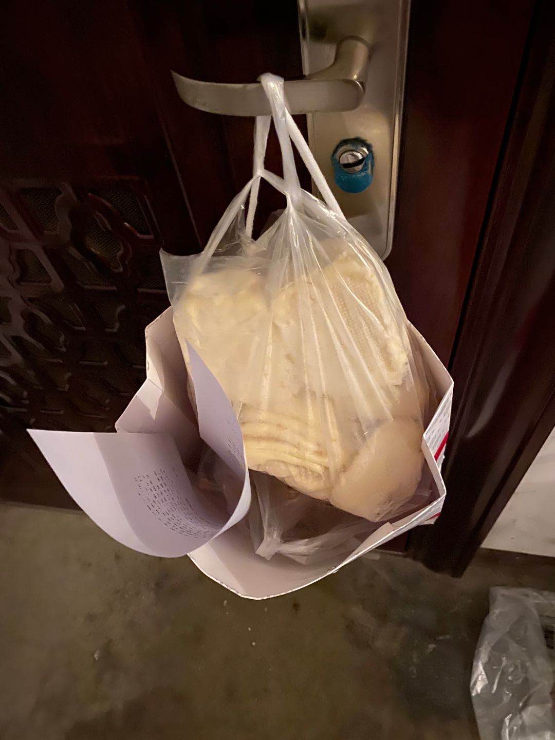 為居家隔離的袁強(qiáng)老師送飯菜