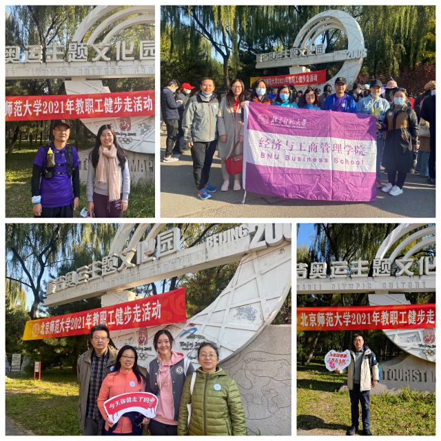 本次活動,不限起終點和配速,老師們自選路線,完成5公里即可。校工會在奧森南園健步途中設立兩個打卡站,布置校旗等,為健走友們加油鼓勁。在"廉潔奧運主題文化園"雕塑前照了合影后,活動正式開始,老師們精神抖擻,興致高昂,沿著步行道闊步向前,一邊呼吸著新鮮的空氣,一邊進行著生活和工作方面的交流,感受著集體活動帶來的愉悅。和諧的倩影與公園入秋后的美景相得益彰,藍天、白云、健步打卡的隊伍共同構成公園里亮麗的風景。