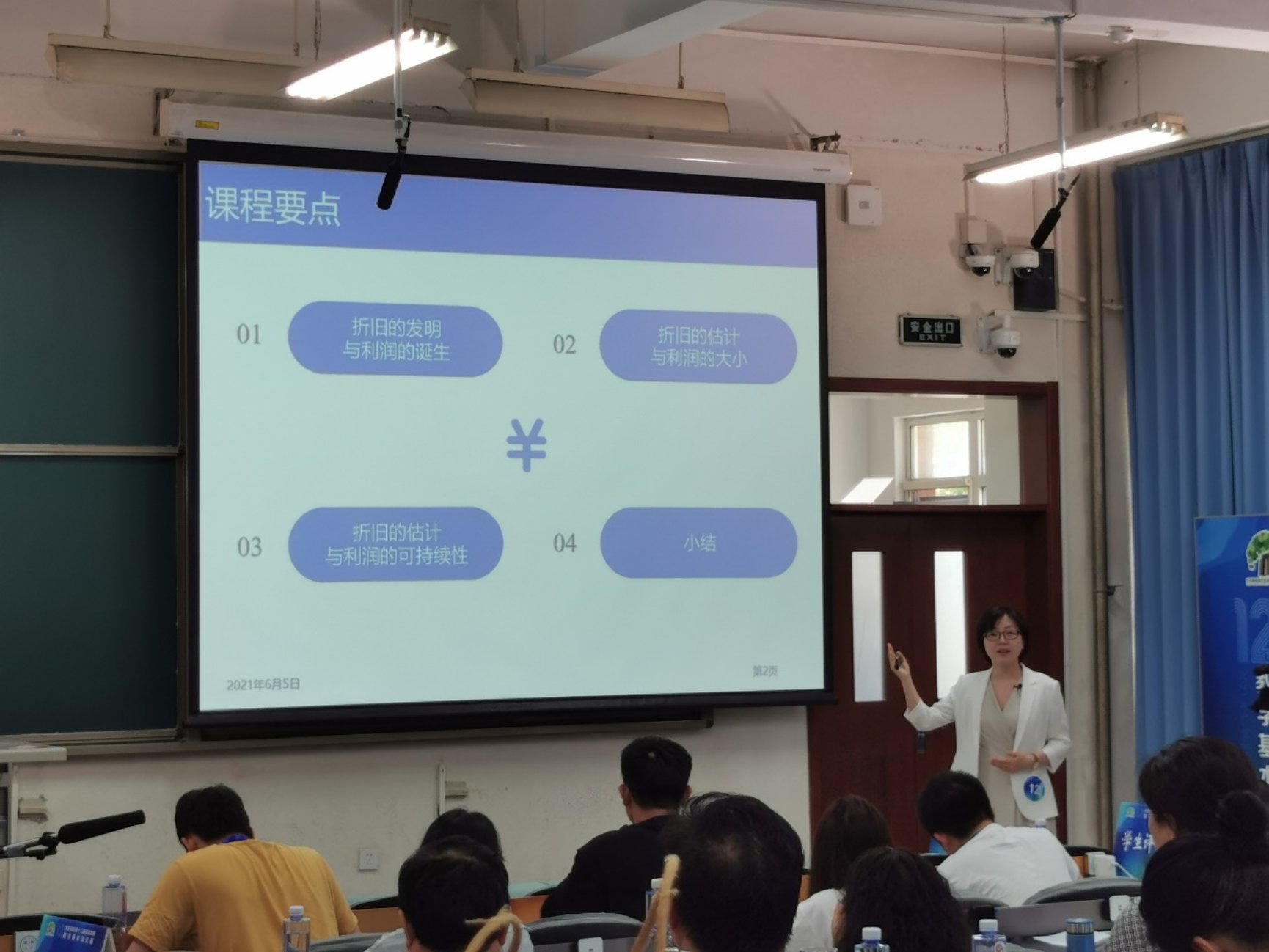方芳老師參賽的課程是會(huì)計(jì)學(xué),面向本科二年級(jí)學(xué)生,主題是折舊與利潤(rùn)。教學(xué)過(guò)程主要分為導(dǎo)入、展開(kāi)和總結(jié)三個(gè)環(huán)節(jié),深入淺出地講解了折舊的發(fā)明及其與利潤(rùn)的關(guān)系。方芳老師采用圖文并茂的方式生動(dòng)地引入課堂,從第一次工業(yè)革命鐵路公司面臨的困境,順利延伸到會(huì)計(jì)史的重要進(jìn)步;用恒瑞醫(yī)藥的具體案例,分析了不同折舊方法對(duì)利潤(rùn)的大小以及利潤(rùn)的可持續(xù)性的影響。授課過(guò)程中,方芳老師著裝整潔得體,精神飽滿,思維活躍,善于運(yùn)用手勢(shì)、表情與學(xué)生進(jìn)行互動(dòng),有效地調(diào)動(dòng)學(xué)生思維、學(xué)習(xí)積極性,充分展現(xiàn)出了青年教師特有的專業(yè)素養(yǎng)與個(gè)人魅力。