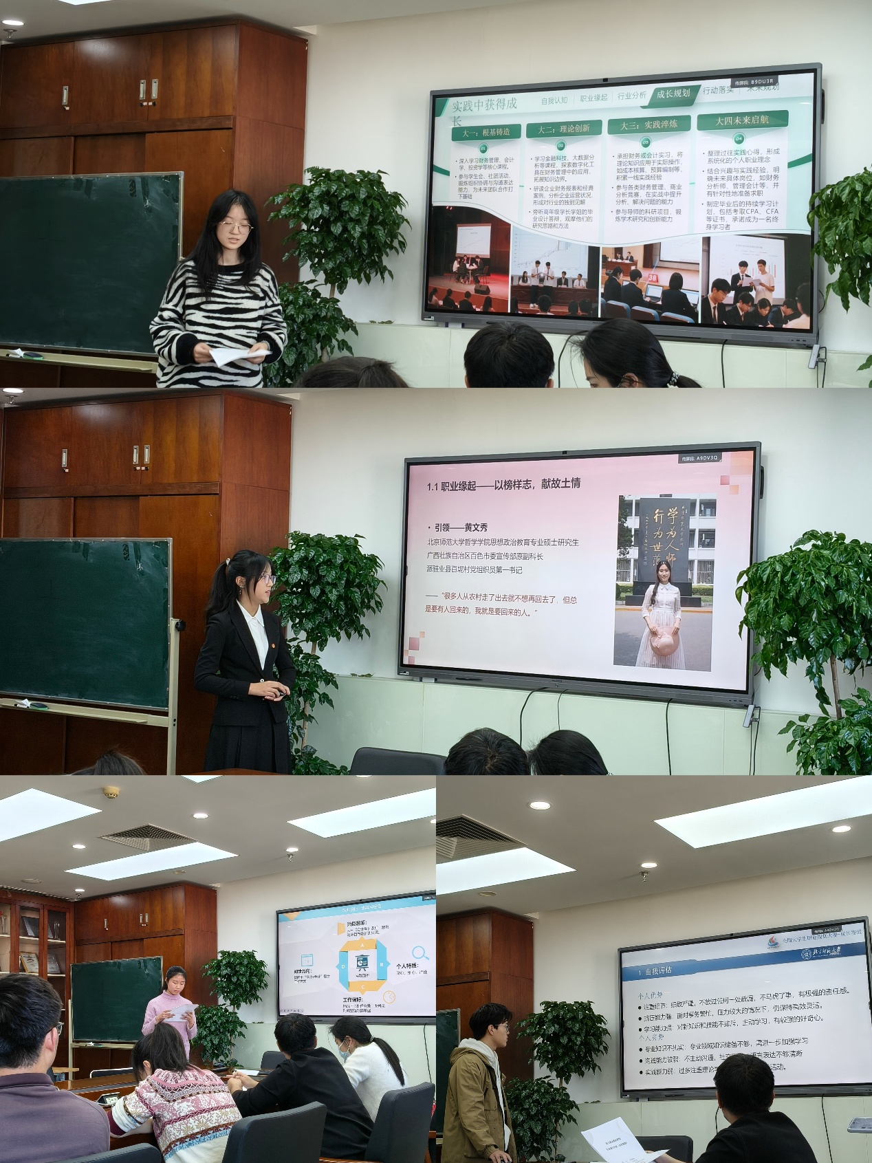 本環(huán)節(jié)的核心是“指導”與“賦能”,四位老師以他們豐富的學識和行業(yè)經(jīng)驗,為每份規(guī)劃提供了“一對一”的精準把脈。老師們跳出了簡單的評判,化身“生涯教練”,從規(guī)劃的可行性、行業(yè)認知的深度、個人能力的匹配度以及長期發(fā)展的可持續(xù)性等維度,提出富有啟發(fā)性的問題和建設性意見。這些犀利的提問與溫暖的鼓勵,如同為同學們的規(guī)劃藍圖進行了一次高質(zhì)量的“升級迭代”,現(xiàn)場思想的火花持續(xù)碰撞,氛圍熱烈。