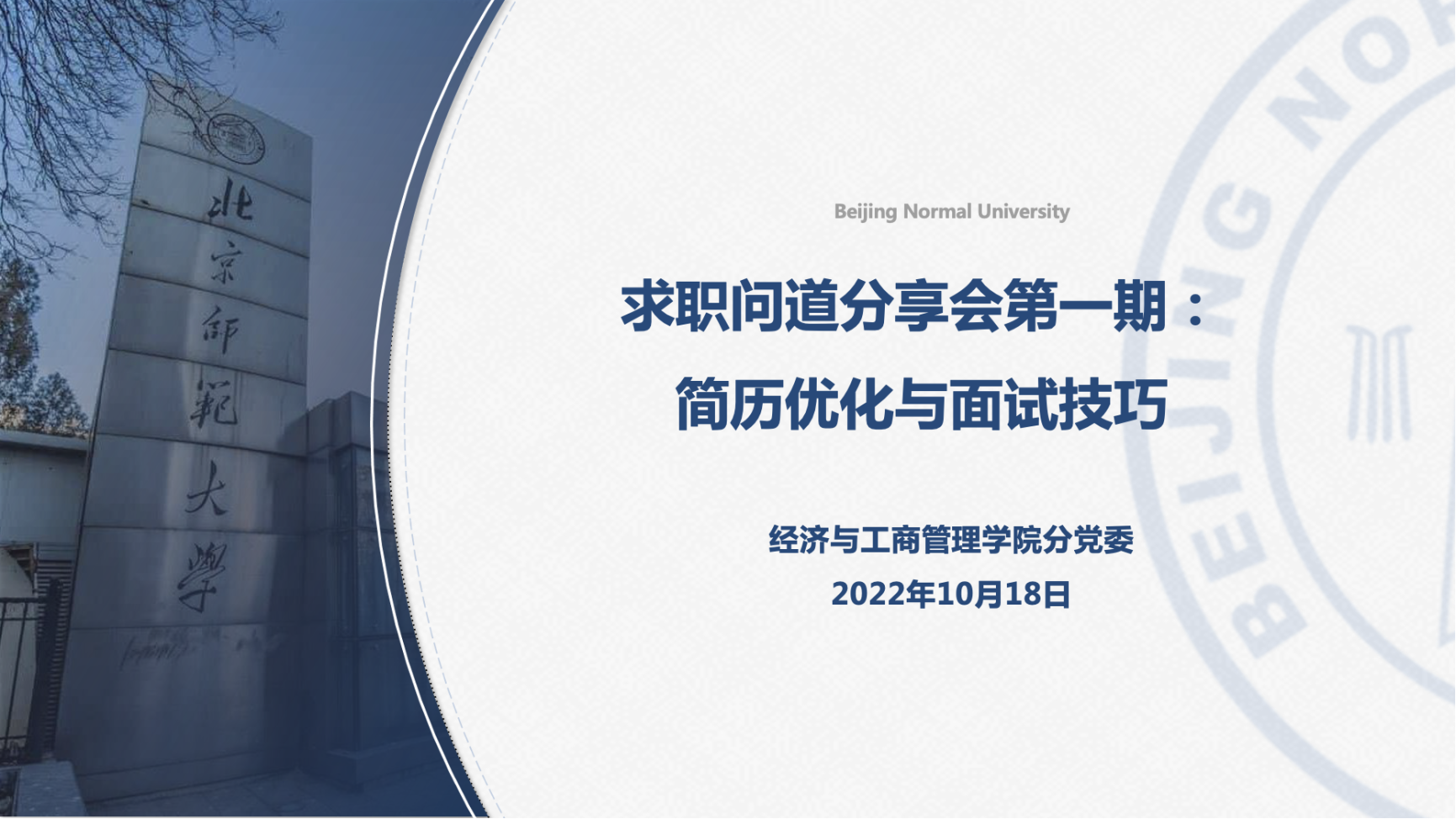 2022年10月18日晚,經(jīng)管學院求職問道系列講座第一期以“簡歷優(yōu)化與面試技巧”為主題,順利舉辦,我院本碩博學生共計128人參加了此次分享會。本次講座由李論老師主持,分享嘉賓為具有16年人力資源從業(yè)經(jīng)驗的馬燕女士。本次分享會旨在幫助應屆畢業(yè)生更好地掌握求職環(huán)節(jié)的基本技能與目標方向,啟發(fā)非應屆畢業(yè)生做好職業(yè)生涯規(guī)劃。